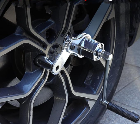 Sette mutter løyseren mellom to hjulbolter/mutrer og sett på sveiva og skru mot klokka til hjulbolten/ mutteren løsner.